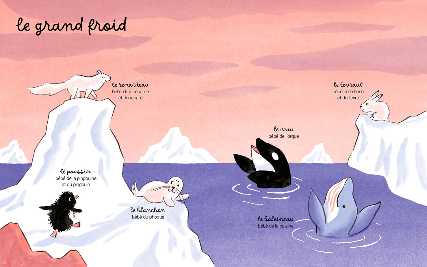 Connaissez-vous le marcassin, le gaou, le blaireautin ou la chevrette ? Dans cet imagier, on découvre les noms fascinants des bébés animaux, des plus familiers aux plus étonnants. Un voyage tendre et éclairant au cœur du monde animal.