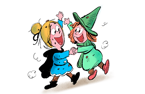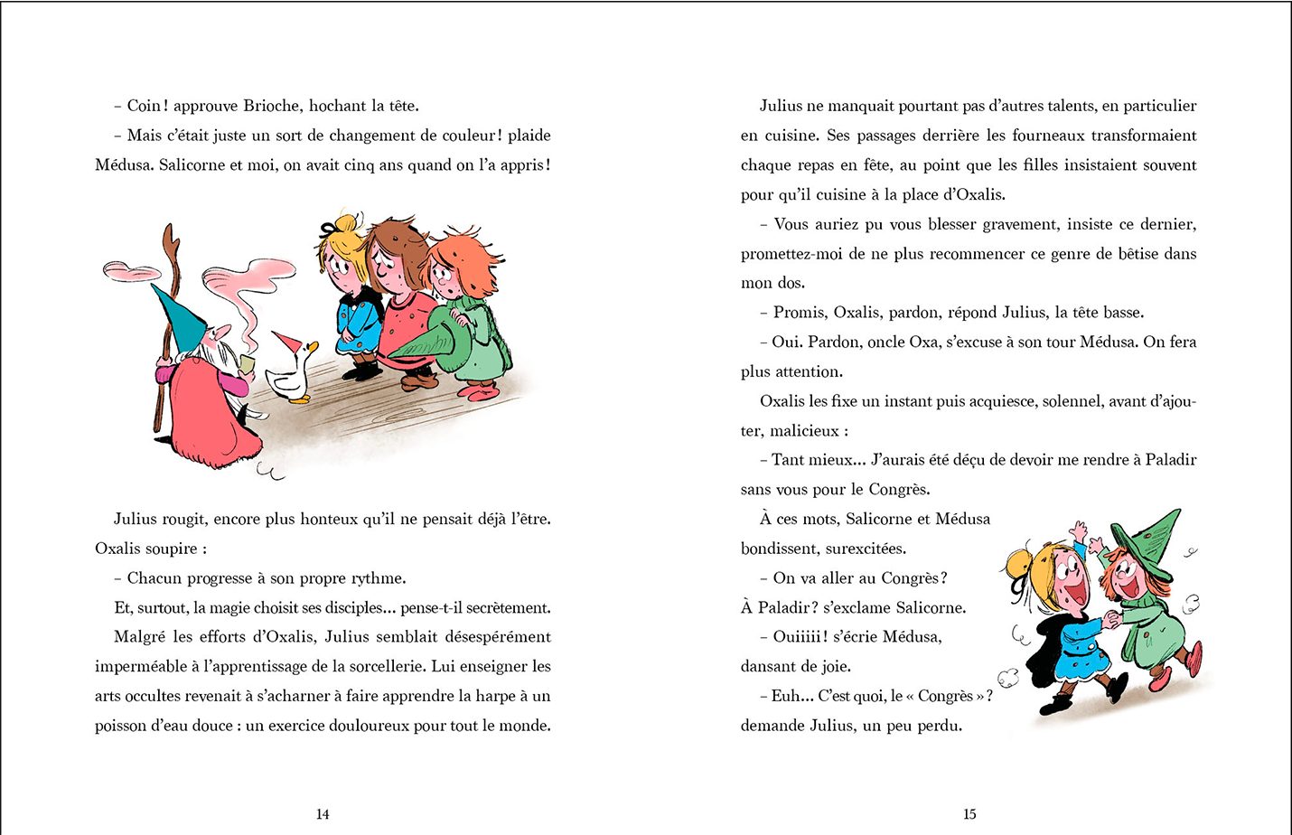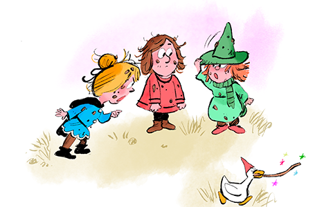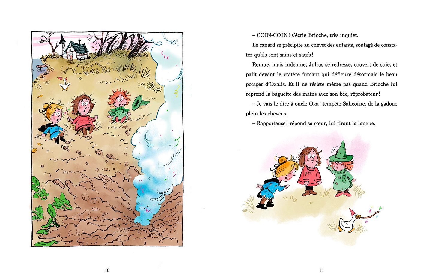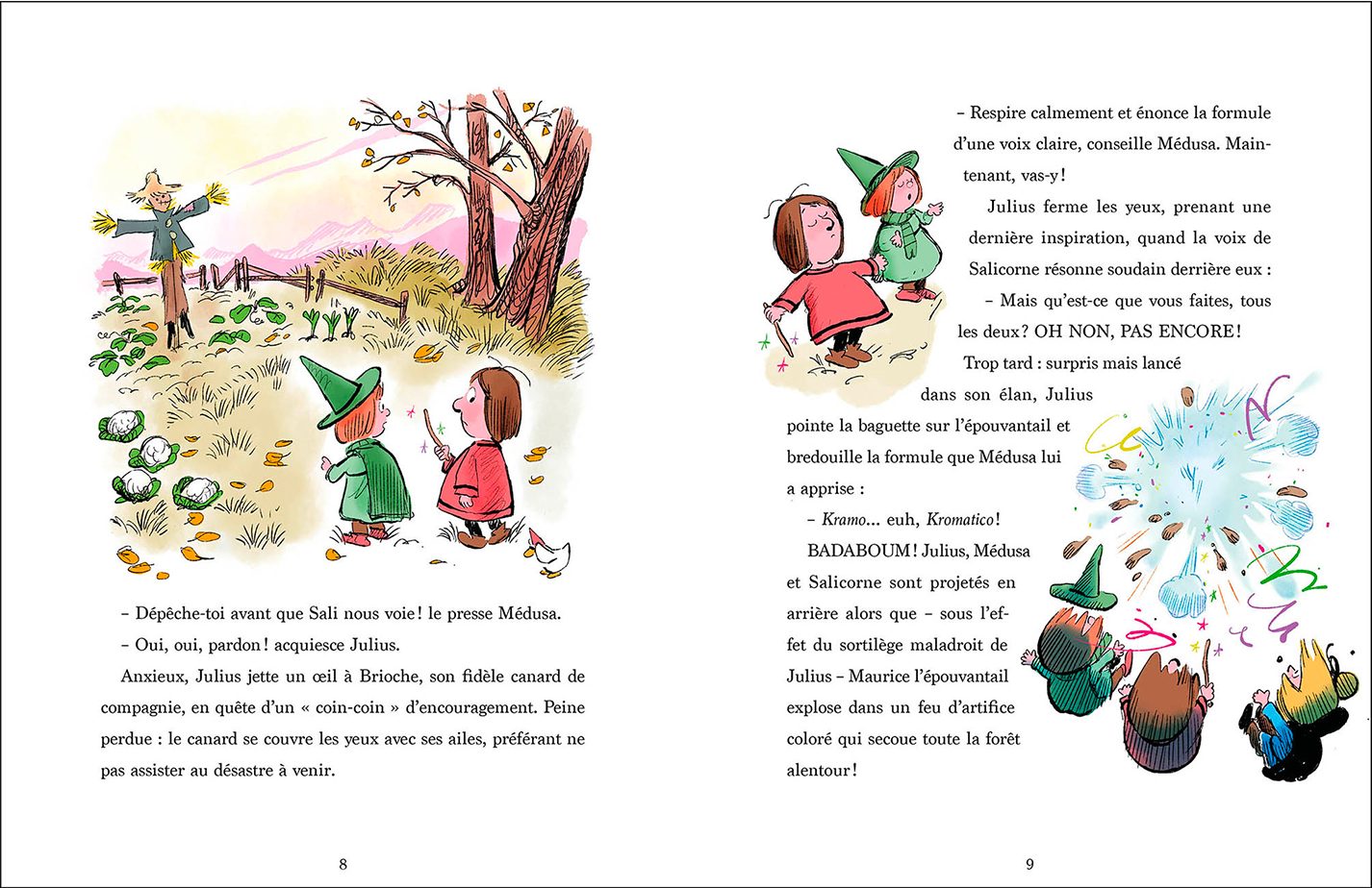 Des personnages auxquels chaque enfant peut s’identifier : 2 jumelles sorcières, un garçon vagabond et Brioche… un canard génial !