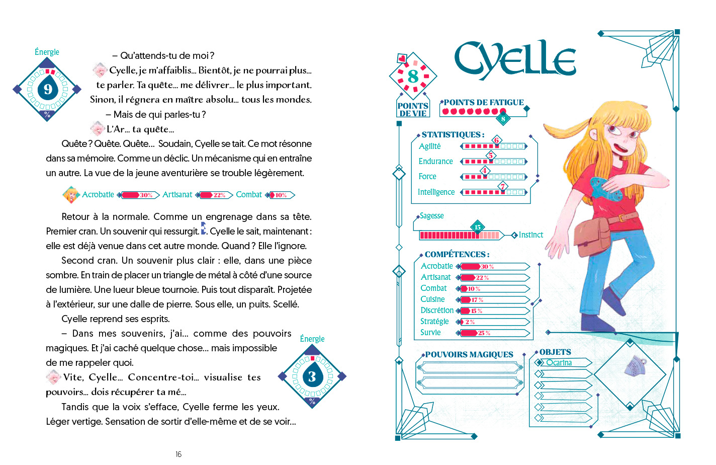 Quand Cyelle joue d’un mystérieux ocarina, la voici immédiatement plongée dans une succession de mondes parallèles qu’un terrifiant Argeôlier tente d’asservir. Elle va devoir reconstituer sa mémoire enfermée dans des puits magiques, progresser d’un monde à l’autre pour sauver l’Esprit-Gardien, acquérir des compétences, trouver des artefacts magiques, résoudre des énigmes… et surveiller ses points de vie !
